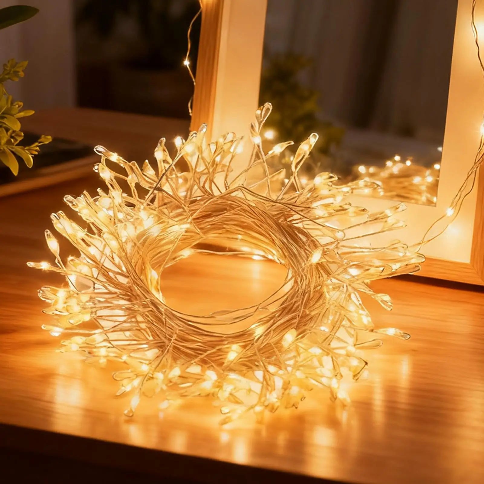 Fleksible kobbertråd-lyskæder med 8 lyseffekter og fjernbetjening – skab den perfekte stemning til jul, fester eller hyggelige aftener året rundt.
